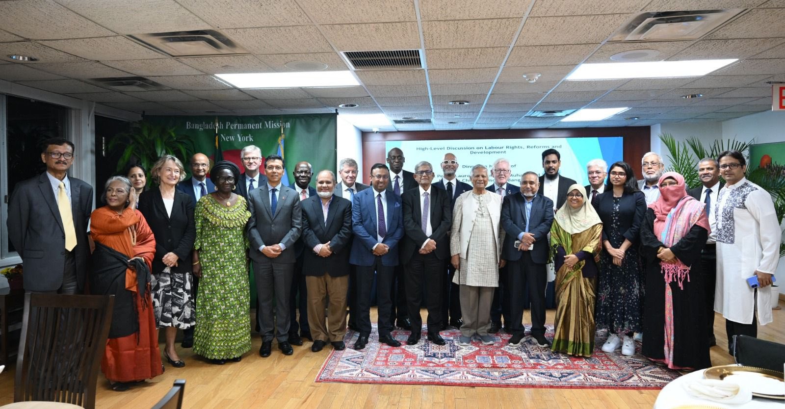 বৃহস্পতিবার (২৫ সেপ্টেম্বর) জাতিসংঘে বাংলাদেশ স্থায়ী মিশনে আয়োজিত নৈশভোজে শ্রম আইন, শ্রমিক অধিকার এবং দেশে চলমান সংস্কার প্রচেষ্টার ওপর একটি উচ্চপর্যায়ের সংলাপে এ কথা বলেন প্রধান উপদেষ্টা।