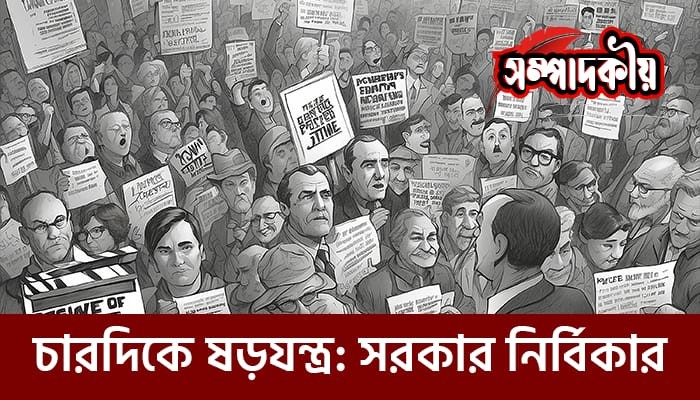 দেশের বাইরে ষড়যন্ত্র, ভেতরে তৃণমূলে অসন্তোষ-উত্তেজনা। পত্রপত্রিকায় দেশের এ রকম পরিস্থিতি প্রায়ই উঠে আসছে। তবু সরকার নির্বিকার থেকে রাষ্ট্র পরিচালনা করে যাচ্ছেন। সরকারের দৃষ্টি ডানে-বামে-পেছনে নয়, সামনের দিকে। সরকারের হাবভাবে মনে হয় অবস্থা নড়বড়ে। আর বিরোধীদলীয় সভা-সমাবেশে যেসব কথাবার্তা হচ্ছে, সেসব কথাবার্তা থেকে মনে হতে পারে, ‘সরকারের আয়ু হয়তো একটি রাতও কাটবে না। নতুন সূর্যোদয়ে সঙ্গে হয়তো নতুন সরকারও দেখা যাবে।’ এই আশা তাদের পূরণ হয়নি। ৭ জানুয়ারি জাতীয় নির্বাচন এবং মে থেকে সাত ধাপের উপজেলা নির্বাচনে ভোটার উপস্থিতি আশাব্যঞ্জক মনে না হলেও সরকারের পক্ষে অজুহাত দেখানো হয়েছে, জাতীয় নির্বাচনে বিএনপিসহ অনেকগুলো দলের নির্বাচনে যোগ না দেওয়া। স্থানীয় নির্বাচনে ধানকাটা এবং বৈরী আবহাওয়াকে কম ভোটার ভোটকেন্দ্রে আসার অজুহাত হিসেবে দেখানো হয়েছে। তবে অনেকেই ইসির এই যুক্তিকে খোঁড়া যুক্তি বলে মনে করছে। অনেকেই মনে করেন, ভোটের প্রতি মানুষের আস্থা নেই। তাদের যুক্তি, যে নির্বাচনে ভোটের ফলাফল নির্বাচনের আগেই সাধারণ ভোটারদের কাছে জানাজানি হয়ে যায়, সে নির্বাচনে ভোট দেওয়ার জন্য ভোটকেন্দ্রে যাওয়ার কোনো যুক্তি খুঁজে পান না তারা। তাই যুক্তিসংগতভাবেই ভোটার উপস্থিতি কম হয়। বাংলাদেশ নিয়ে আন্তর্জাতিক ষড়যন্ত্রের কথা প্রায়ই বাইরে শোনা যায় পত্র-পত্রিকার মাধ্যমে। ভারত-চীন-রাশিয়ার বাংলাদেশ নিয়ে ষড়যন্ত্রের কথাও শোনা যায়। ইলেকশনের সময় যখন ঘনিয়ে আসে, বাংলাদেশে তখন যেন ষড়যন্ত্রের বান বয়ে যায়। বর্তমান সময় ফিলিস্তিনি-ইসরায়েল যুদ্ধে বিশ্ব রাজনীতির মানচিত্রই যেন পাল্টে যাচ্ছে। বর্তমান বিশ্বে তিনটি ঘোষিত যুদ্ধ চলছে। একদিকে রাশিয়া-ইউক্রেন, ইসরায়েল-ফিলিস্তিন; অন্যদিকে মধ্যপ্রাচ্যে সিরিয়া-সৌদি আরব। এসব যুদ্ধে শিশু-নারী- বৃদ্ধদের প্রাণহানি ঘটছে অসহায়ের মতো। যুদ্ধ কখনো মানবকল্যাণে বা সভ্যতা রক্ষার কাজে সংঘটিত হয়নি। যুদ্ধ মানেই ধ্বংস। যুদ্ধ মানেই প্রাণহানি, রক্তপাত। যুদ্ধ মানেই ধ্বংস। মানবসভ্যতার সামনে দু-দুটি বিশ্বযুদ্ধের ভয়াবহ স্মৃতি এখনো বিদ্যমান। মানুষের রক্তে বুঝি শান্তির চেয়ে প্রাণ সংহারের উপাদানই বেশি। তাই তো মানবসভ্যতার শত্রু যুদ্ধই বুঝি মানুষকে শান্তির চেয়ে যুদ্ধের দিকেই টানে বেশি। নইলে কমনওয়েলথ, জাতিসংঘ স্থাপন করা হলো শুধু শান্তি প্রতিষ্ঠার লক্ষ্যে। কিন্তু যুদ্ধ ঠেকানো গেল না। শান্তিময় একটি বিশ্বও গড়ে তোলা গেল না।