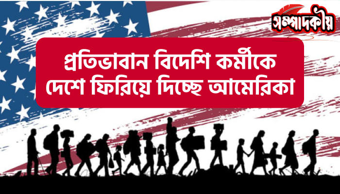 খবরটি বড়ই স্পর্শকাতর। দুনিয়ার সব দেশ, এমন কি আমেরিকা নিজেও মনে করে তাদের অবকাঠামোগত উন্নয়নসহ সব উন্নয়ন সম্ভব হয়েছে সুদক্ষ প্রবাসী কর্মীদের জন্য। সেই অভিজ্ঞ ও প্রতিভাবান কর্মীরা নিজেদের মতো করে প্রতিভার স্বাক্ষর রেখে আমেরিকাকে গড়ে তুলেছেন, তাদেরকে আমেরিকা থেকে বের করে দেয়া- কারো কাছেই ভালো কোনো সিদ্ধান্ত বলে মেনে নিতে পারছে না। সাম্প্রতিক সময়ে হাজার হাজার প্রতিভাবান শ্রমিককে আমেরিকা থেকে বের করে দেবে- এমন সিদ্ধান্তকে কেউ স্বাভাবিক কোনো সিদ্ধান্ত বলে মেনে নিতে পারবে না বলেই মনে করছেন। ইমোশনাল সিদ্ধান্ত সবসময় সুফল দেয় না। আরও একটা কথা, পজিটিভ ইমোশন অধিক সুফল দেয়। তেমন কথাই বলে থাকেন সুধীজন। সুতরাং এখানেও নেগেটিভ সিদ্ধান্ত সুফল দেবে না বলে মনে করা যায়। যে শিরোনাম নিয়ে এই সম্পাদকীয়। ঠিকানা’র ১৫ মে’র ৭০ পৃষ্ঠার লিড নিউজ ‘হাজার হাজার প্রতিভাবান বিদেশি কর্মীকে ফিরিয়ে দিচ্ছে যুক্তরাষ্ট্র’। তাতে বলা হয়েছে যে, সাম্প্রতিক সময়ে হাজার হাজার প্রতিভাবান বিদেশি কর্মীকে যুক্তরাষ্ট্র ফিরিয়ে দিচ্ছে। এর ফলে অনেকে তাদের ডিগ্রি সম্পন্ন করার পর আমেরিকা ছেড়ে চলে যেতে বাধ্য হচ্ছে। এ অবস্থায় তাদের নিজ দেশে ফিরে যাওয়া ছাড়া আর কোনো বিকল্প থাকছে না। সংবাদে আমেরিকার বিভিন্ন বিশ্ববিদ্যালয় থেকে ভালো ভালো ফল অর্জন করেও নিজ নিজ দেশে ফিরে যেতে বাধ্য হচ্ছে বলে জানা যাচ্ছে। তারা পুনরায় আমেরিকার শীর্ষস্থানীয় বিভিন্ন বিশ্ববিদ্যালয় থেকে ভালো ফল অর্জনকারী স্নাতক ডিগ্রিধারী আবারও প্রতিযোগিতামূলক আবেদনের ফলাফলের জন্য দুর্ভাবনার অপেক্ষা করেছিলেন। তবু বার্ষিক এইচ-১বি ভিসা লটারির ফলাফল সম্পূর্ণভাবে তাদের হার নাগালের বাইরে।