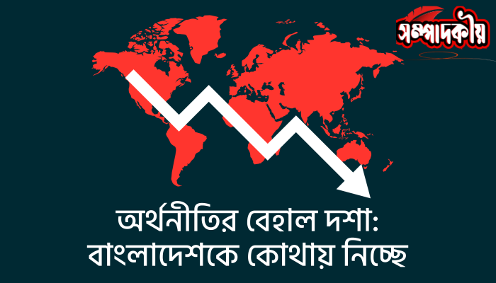 এরপর শুরু হয়ে যায় ইসরায়েল-ফিলিস্তিন যুদ্ধ। যে যুদ্ধে এখন পর্যন্ত প্রাণ দিয়েছে প্রায় ৪০ হাজার মানুষ এবং কয়েক লাখ মানুষ আহত। আসলে যখন যুদ্ধ চলমান, সে সময়ে হতাহতের সঠিক সংখ্যা নির্ধারণ করা খুব কঠিন। রাশিয়া-ইউক্রেন যুদ্ধেও অসংখ্য মানুষ হতাহত হয়। যার সঠিক সংখ্যা নিরূপণ করা এখনই অসম্ভব। বিশ্ব এই ইসরায়েল-ফিলিস্তিন যুদ্ধে খুব বেশি করে বিভক্ত হয়ে পড়ে। ফলে বাংলাদেশ বা তেমন অর্থনীতির দেশগুলোর জন্য কালো মেঘের মতো অর্থনীতি অন্ধকারে ডুবতে শুরু করে। ঠিকানা পত্রিকার একটি সংখ্যার একটি পাতায় চোখ মেললেই বাংলাদেশের অর্থনীতির অর্থনীতি কোন দিকে ধেয়ে চলেছে, বুঝতে কষ্ট হবে না। ঠিকানার সর্বশেষ সংখ্যা অর্থাৎ ১৫ মে’র একটি সংখ্যাতেই বাংলাদেশের অর্থনীতির অবস্থা বুঝে নিতে যথেষ্ট। মাত্র একটি পৃষ্ঠাতেই অর্থনীতির বেহাল অবস্থা নিয়ে চারটি নিউজ। প্রধান খবরটি শেষেই বলি। তার আগে অন্য তিনটি নিউজের কথা বলে নেই। ১. ‘ডলার সংকটে অস্থির অর্থনীতি’; ২. ‘উদার নৈতিক বিশ্বব্যবস্থা ভেঙে পড়েছে’; ৩. ‘রিজার্ভ নিয়ে দুশ্চিন্তা বাড়ছে’। শেষ সংবাদটি হচ্ছে ৪. ‘ফের বিলিয়ন ডলার চুরি!/ বাংলাদেশ ব্যাংকের অস্বীকার।’
