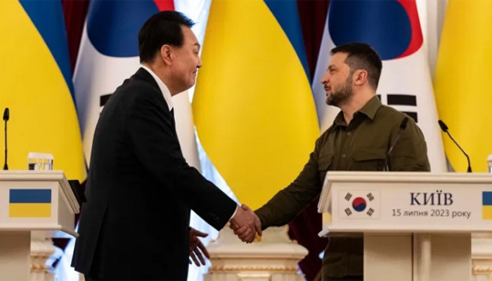 আকম্মিক সফরে ইউক্রেনে গেছেন দক্ষিণ কোরিয়ার প্রেসিডেন্ট ইউন সুক ইওল। সঙ্গে রয়েছেন ফার্স্টলেডি কিম কিওন হি। কিয়েভ পৌঁছে যুদ্ধবিধ্বস্ত দেশটির প্রেসিডেন্ট ভলোদিমির জেলেনস্কির সঙ্গে সাক্ষাৎ করেছেন ইওল। এ সময় ইউক্রেনে সামরিক সহায়তা আরও বাড়ানোর প্রতিশ্রুতি দিয়েছেন দক্ষিণ কোরিয়ার প্রেসিডেন্ট। এ ছাড়া গত বছরের তুলনায় এ বছর ৫০ বিলিয়ন ডলার বেশি মানবিক সহায়তা দেওয়ারও ঘোষণা দিয়েছেন তিনি।