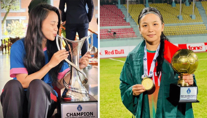 বাংলাদেশ শিরোপা ধরে রাখতে পেরেছে। নেপালকে ২-১ গোলে হারিয়ে দ্বিতীয় দল হিসেবে সাফের শ্রেষ্ঠত্ব ধরে রাখার কীর্তি গড়েছে মেয়েরা। এমন অর্জনে অবদান রাখা ঋতু পেয়েছেন আসরের মোস্ট ভ্যালুয়েবল ফুটবলারের খেতাব। ফাইনালের পর নেচে-গেয়ে শিরোপা উদযাপন করেছেন সতীর্থদের সঙ্গে। যা ভক্তদের সঙ্গে শেয়ার করেন নিজের অফিসিয়াল ফেসবুক পেজে।