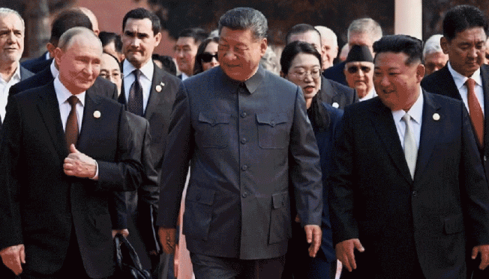 চীনের প্রেসিডেন্ট সি চিন পিং বেইজিংয়ে সামরিক কুচকাওয়াজের অনুষ্ঠানে রাশিয়ার প্রেসিডেন্ট ভ্লাদিমির পুতিন এবং উত্তর কোরিয়ার নেতা কিম জং-উনকে পাশে নিয়ে বিশ্বকে একটি স্পষ্ট বার্তা দিয়েছেন। তাদের পেছনে ইরান, পাকিস্তান, বেলারুশ এবং মিয়ানমারসহ প্রায় দুই ডজন দেশের নেতারা উপস্থিত ছিলেন। এই দৃশ্য স্পষ্টভাবে ইঙ্গিত দেয় যে, চীন ইচ্ছাকৃতভাবে যুক্তরাষ্ট্রকে উসকে দিচ্ছে এবং নিজেদের সামরিক শক্তি ও ভূ-রাজনৈতিক প্রভাবের ক্ষেত্রে একটি বিকল্প শক্তি হিসেবে তুলে ধরছে।