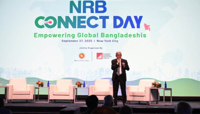 স্থানীয় সময় ২৭ সেপ্টেম্বর (শনিবার) ম্যানহাটনের নিউইয়র্ক মেরিয়ট মার্কুইস (১৫৩৫ ব্রডওয়ে)-এ অনুষ্ঠিত ‘এনআরবি কানেক্ট ডে: এমপাওয়ারিং গ্লোবাল বাংলাদেশিজ’ শীর্ষক অনুষ্ঠানের একটি সেশনে বক্তব্যে তিনি এ আহ্বান জানান।