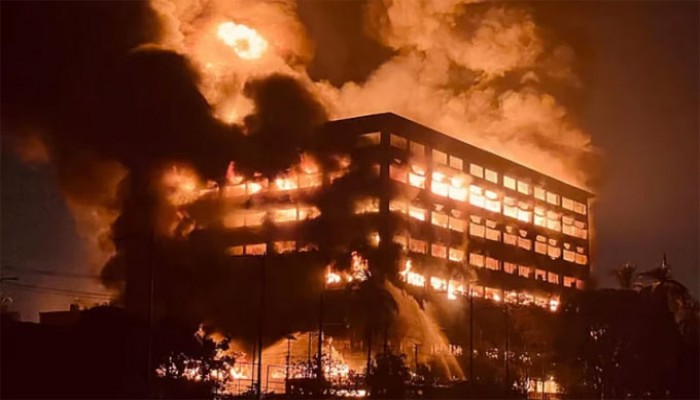 ইতিমধ্যে উপর থেকে নিচের দিকে আগুন ছড়িয়ে এখন তৃতীয় তলা পর্যন্ত এসেছে।