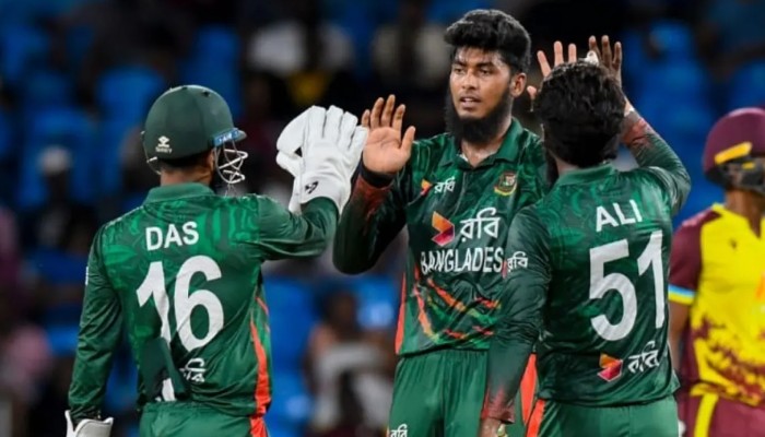 এর আগে বাংলাদেশের ব্যাটিংও ছিল বেশ টলমলে। ইনিংসের শুরুতেই ৮ রানে হারায় দুই ওপেনার সাইফ হাসান ও সৌম্য সরকারকে। তবে এরপর তাওহীদ হৃদয় (৫১) ও অভিষিক্ত মাহিদুল ইসলাম অঙ্কন (৪৬) এর ব্যাটে ভর করে ২০০ পেরোয় স্বাগতিকরা। শেষদিকে রিশাদের ১৩ বলে ২৬ রানের ছোট্ট ঝড়ই পার্থক্য গড়ে দেয়।