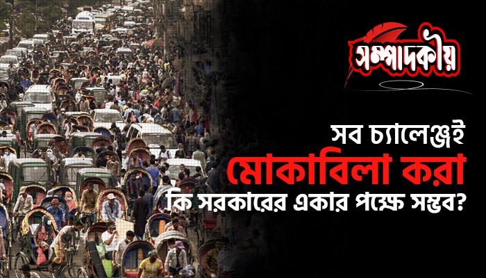 কোনো কোনো সময় আসে, যখন নানাভাবে নানা দিক থেকে সরকারের সামনে চ্যালেঞ্জ এসে দাঁড়ায়। এ রকম সময়ে এ রকম প্রশ্নও দেখা দিতে পারে, সব চ্যালেঞ্জ কি সরকারের একার পক্ষে মোকাবিলা করা সম্ভব? প্রকৃত গণতান্ত্রিক কোনো দেশের সরকারকে সাধারণত এ রকম কোনো প্রশ্নের সম্মুখীন হতে হয় না। ওই রকম গণতান্ত্রিক দেশে যেকোনো চ্যালেঞ্জ সাধারণত সব দলকে মিলেই মোকাবিলা করতে দেখা যায়। তাদের গণতান্ত্রিক মূল্যবোধ এবং গণতন্ত্রের চর্চায় সব রাজনৈতিক দলের সে রকম শিক্ষাই প্রকাশ পায়। মাত্রায় কমবেশি হলেও হতে পারে। আমাদের মতো দেশে জাতির সামনে কোনো চ্যালেঞ্জ এসে দাঁড়ালে, সরকারও জাতীয় সমস্যা জাতীয়ভাবে সবাই মিলে সমাধান করতে আর কাউকে পাশে ডাকে না, বিরোধীরাও পাশে এসে দাঁড়ায় না। বরং সে রকম সময়ে সরকারকে আরও বেশি বিপদে ফেলা যায় কি না, সেই পথ খুঁজতে থাকে।